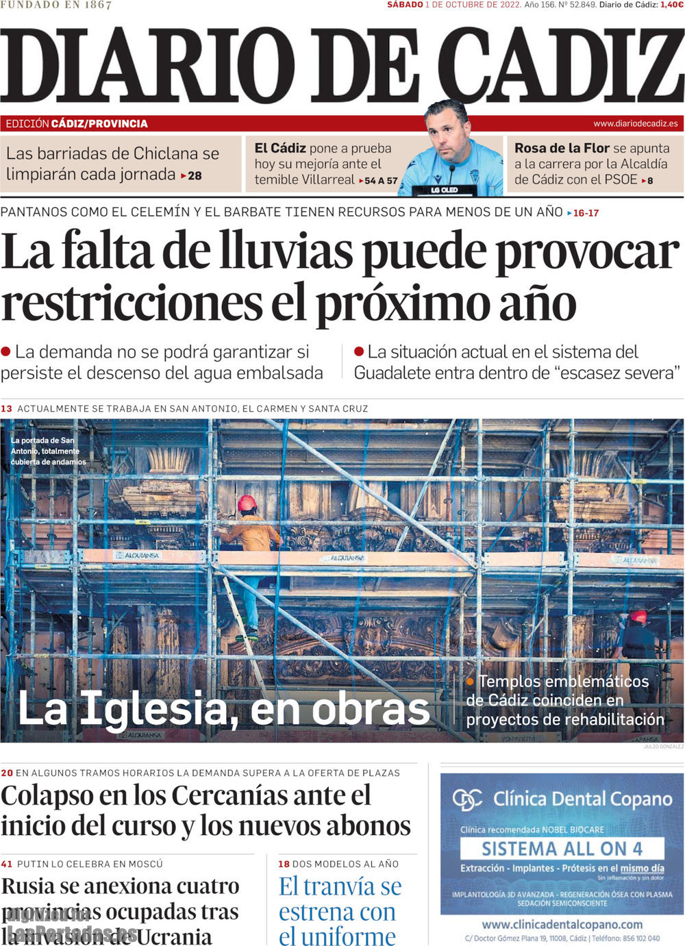 Portada del periodico Diario de Cádiz: