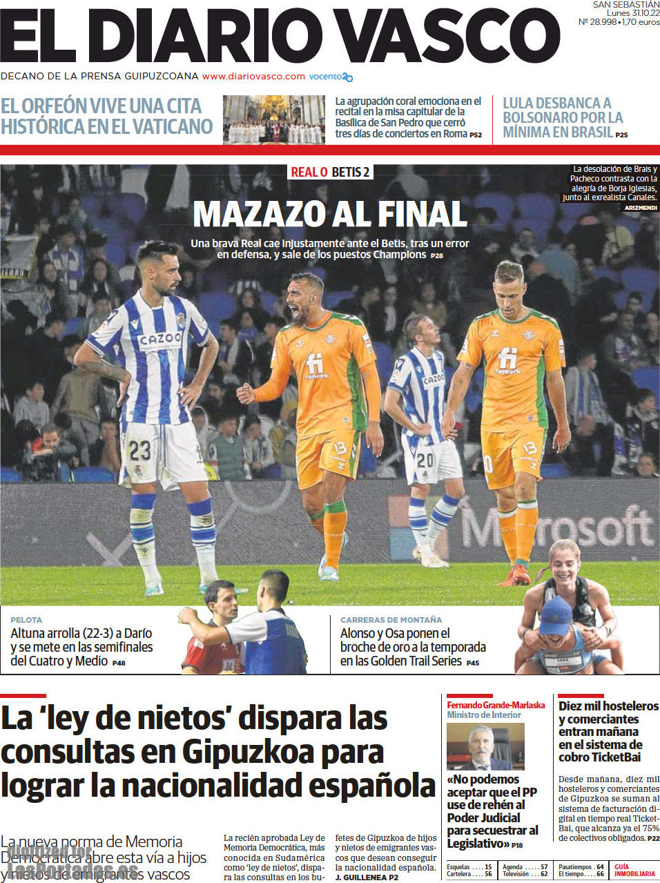 Portada del periodico El Diario Vasco: