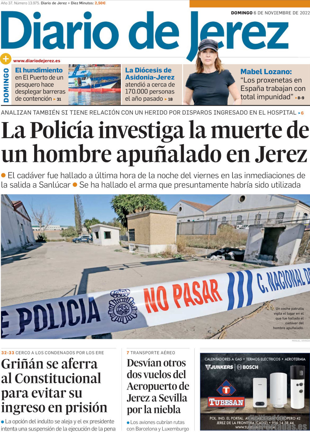 Portada del periodico Diario de Jerez: