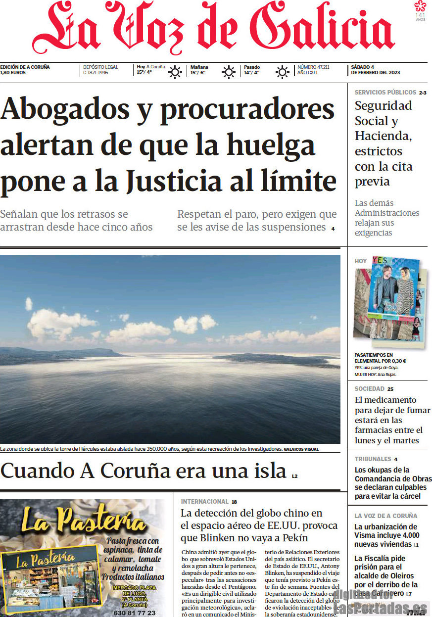Portada del periodico La Voz de Galicia: