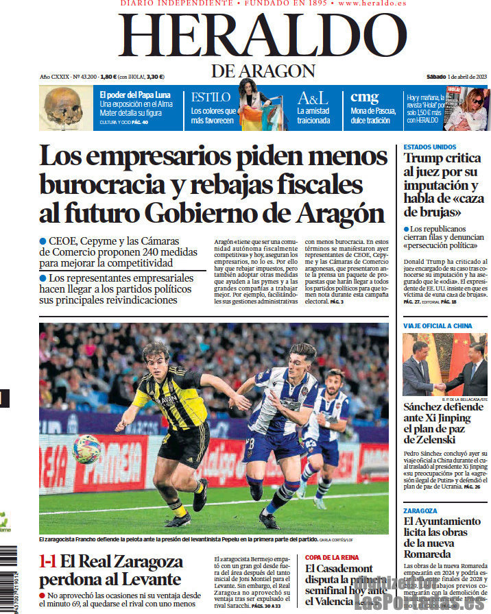 Portada del periodico Heraldo de Aragon: