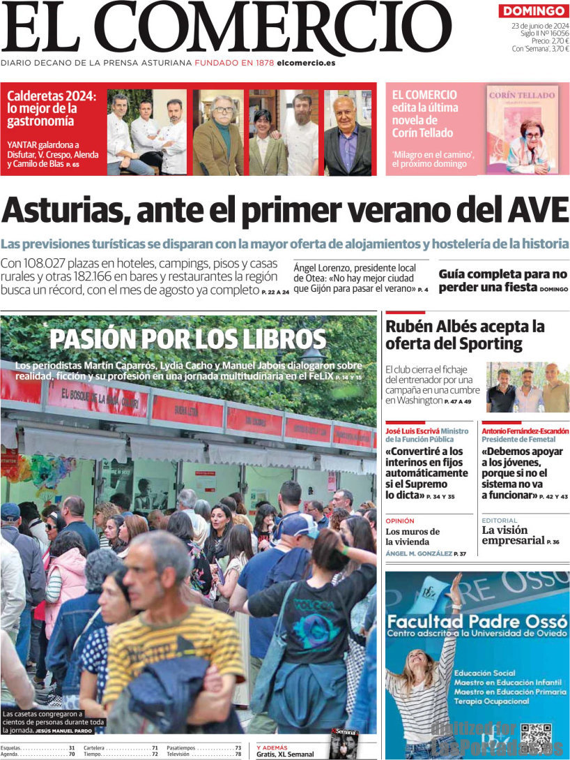 Portada del periodico El Comercio: