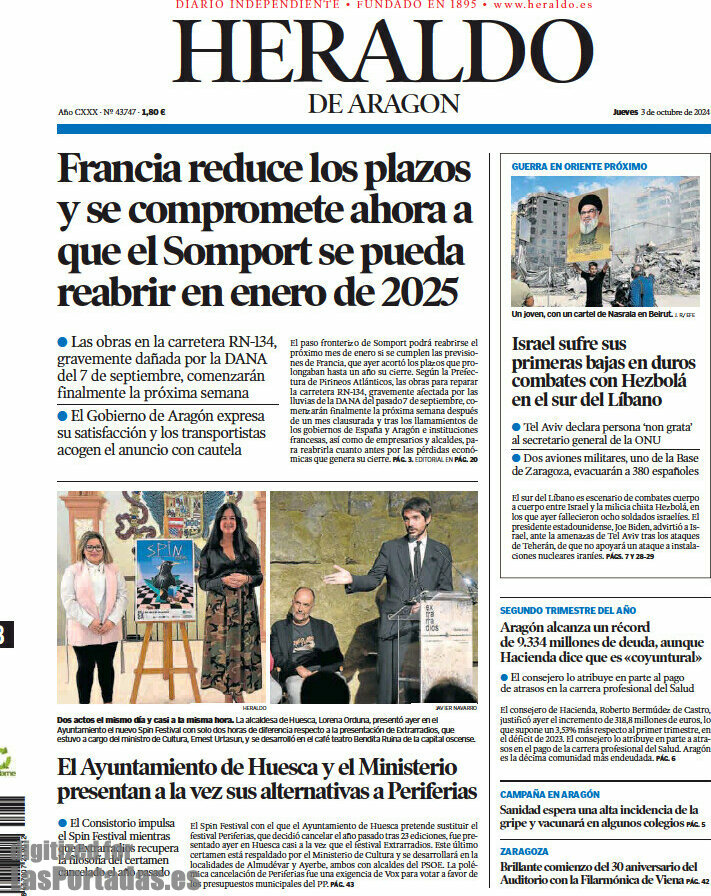 Portada del periodico Heraldo de Aragon: