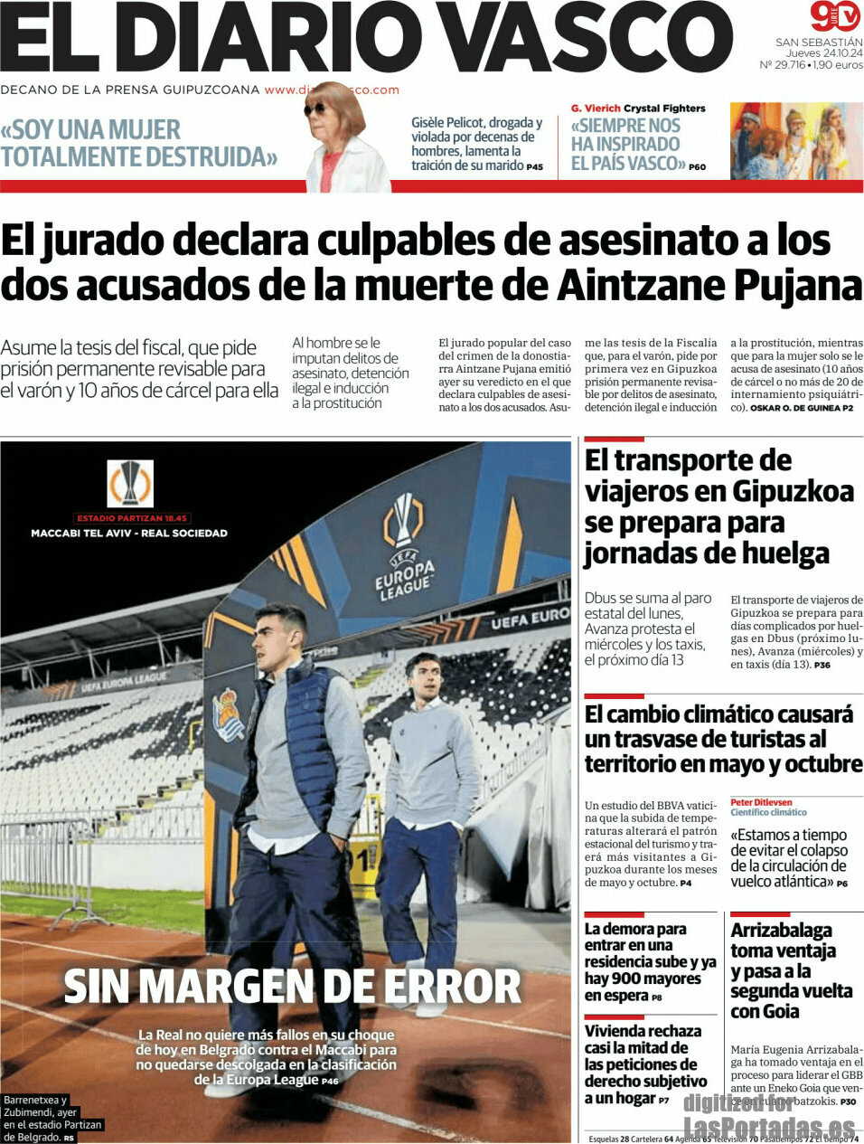 Portada del periodico El Diario Vasco: