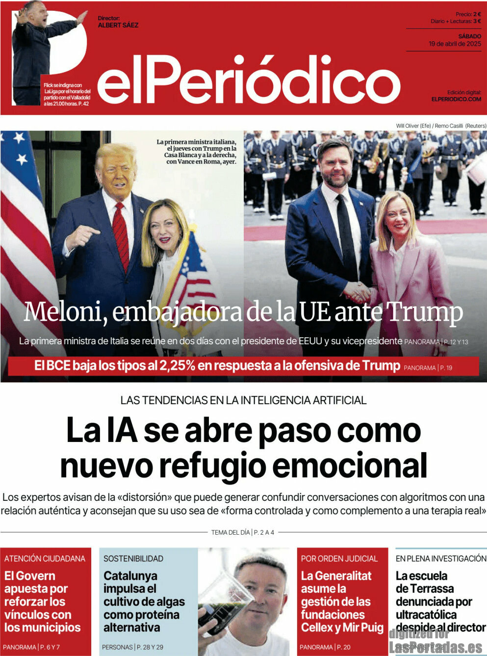 Portada del periodico El Periódico de Catalunya(Castellano):