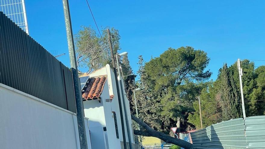 Vecinos del barrio alicantino de Vistahermosa "conviven" desde el pasado sábado con un árbol que se precipitó sobre una de las casas a causa de las fuertes rachas de viento y así permanece desde entonces, dificultando la salida y entrada a los domicilios de los residentes, denuncian los afectados.