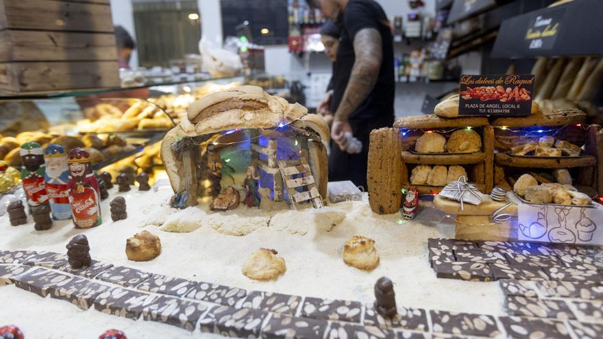 La Navidad vuelve a tomar este mes de diciembre las calles de la Zona Norte de Alicante a través de sus comercios de proximidad. Escaparates convertidos en belenes casi a tamaño real, panaderías transformadas en dulces pesebres comestibles o farmacias que simulan el salón de una casa son algunas de las propuestas que estos días sorprende a los vecinos del barrio.
