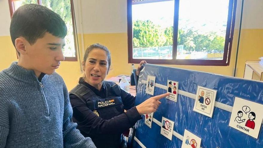 La Policía Nacional ha introducido en sus habituales charlas en colegios de Málaga un innovador método inclusivo que consiste en utilizar una comunicación muy visual basada de pictogramas para luchar contra el acoso escolar y los riesgos del uso de internet. La iniciativa, emprendida por agentes adscritos a la Delegación de Participación Ciudadana, se ha puesto en marcha coincidiendo con una visita al CEIP Manuel Altolaguirre, ubicado en el barrio malagueño de Palma-Palmilla.