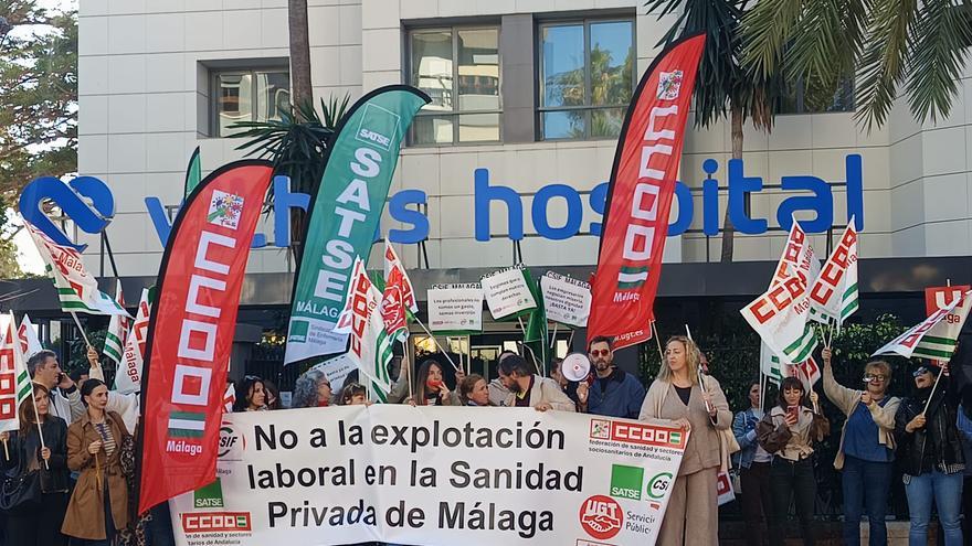 Este martes los profesionales de la sanidad privada de Málaga han comenzado una huelga parcial que se extenderá durante cuatro días y afectará a todos los hospitales y clínicas privados de la provincia. El inicio del paro ha coincidido con una concentración frente al Hospital Vithas, convocada por CCOO, UGT, Satse y CSIF.