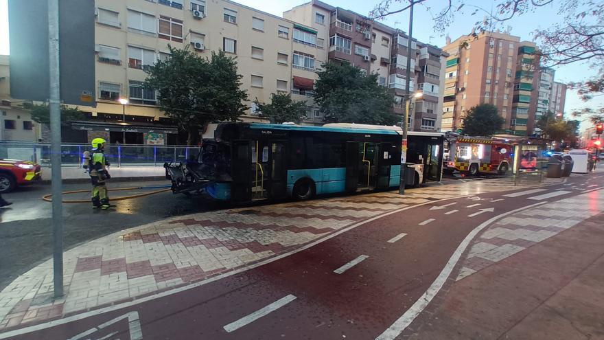 Aparatoso incendio el registrado en la mañana de este lunes en Miraflores. Un autobús de la empresa municipal EMT, que cubría la línea 7, ha sufrido un incendio en la avenida Nuestra Señora de los Clarines, sobre la 7.30 horas, que se ha saldado sin heridos gracias a la rápida actuación de la conductora del bus y la intervenciones de efectivos del Real Cuerpo de Bomberos.